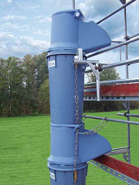 Beide Varianten sind mit Doppelhaken ausgestattet, so dass die Bauschuttrutschen sicher befestigt werden können - egal ob für den Einsatz an Mauer oder Gerüst, Schrägdach oder Flachdach. Die unterschiedlichen Befestigungsmittel garantieren kürzeste Rüstzeiten und damit effizientes Arbeiten. Praktisches Zubehör ermöglicht staubfreies Arbeiten (z. B. in der Innenstadt) oder gleichzeitiges Arbeiten auf mehreren Etagen.